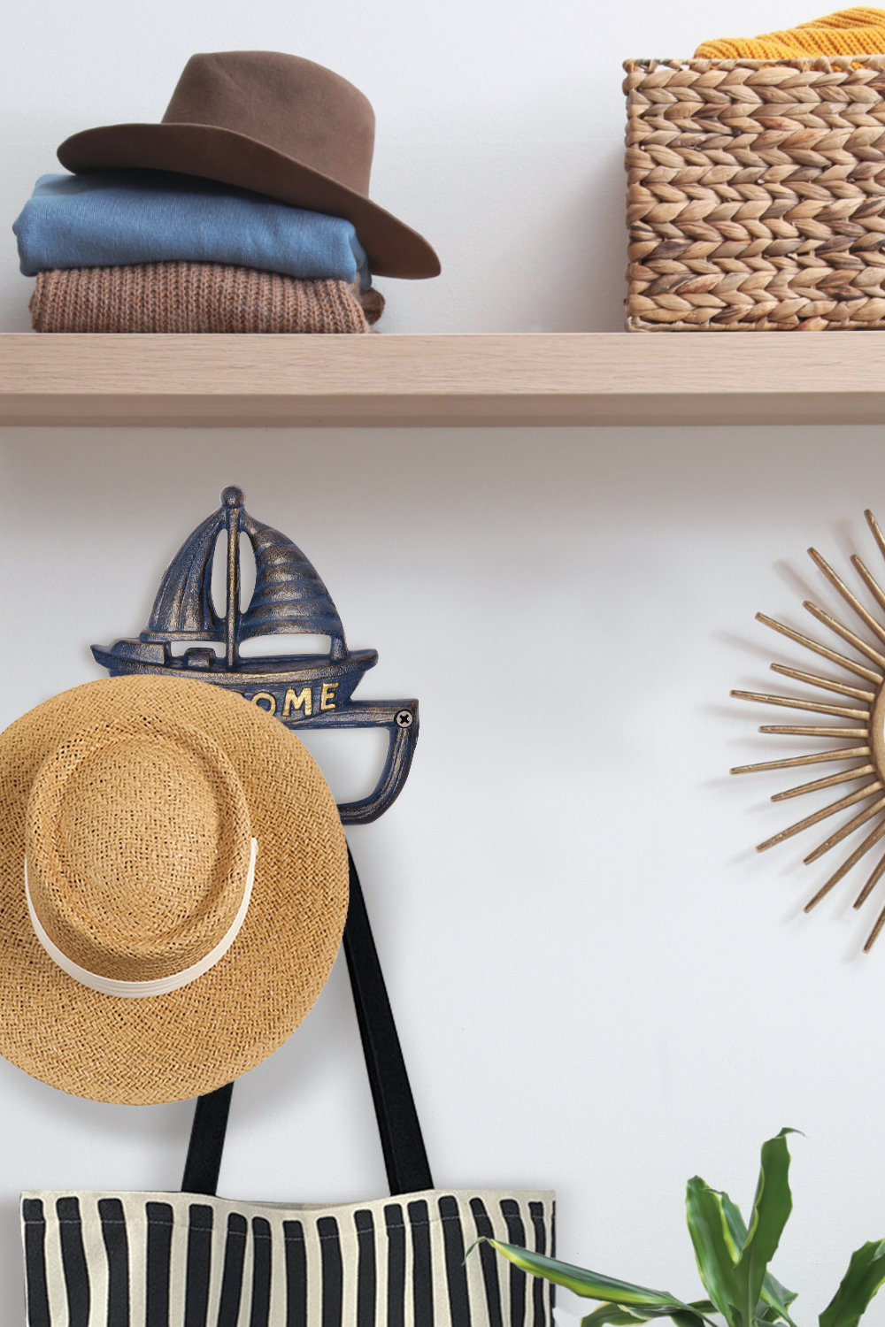 [Handmade Craftsmanship] Each decorative wall hook features a vintage, hand-painted blue and gold sailboat design. Adding a nautical touch to your entryway's versatile organization.