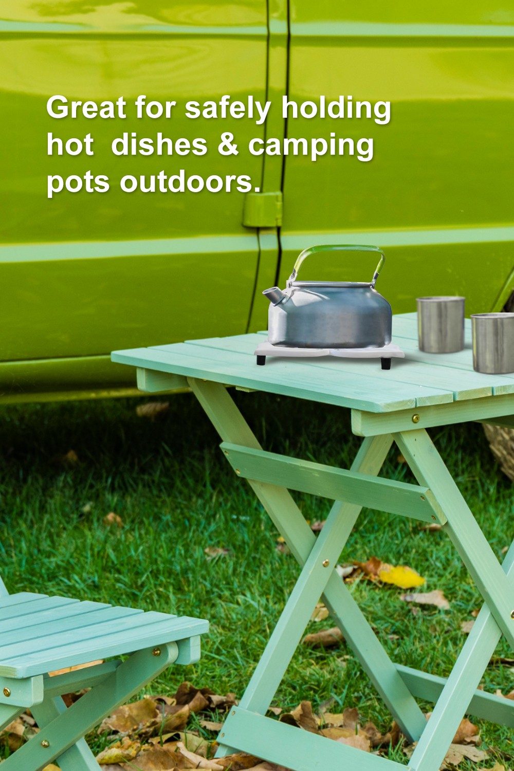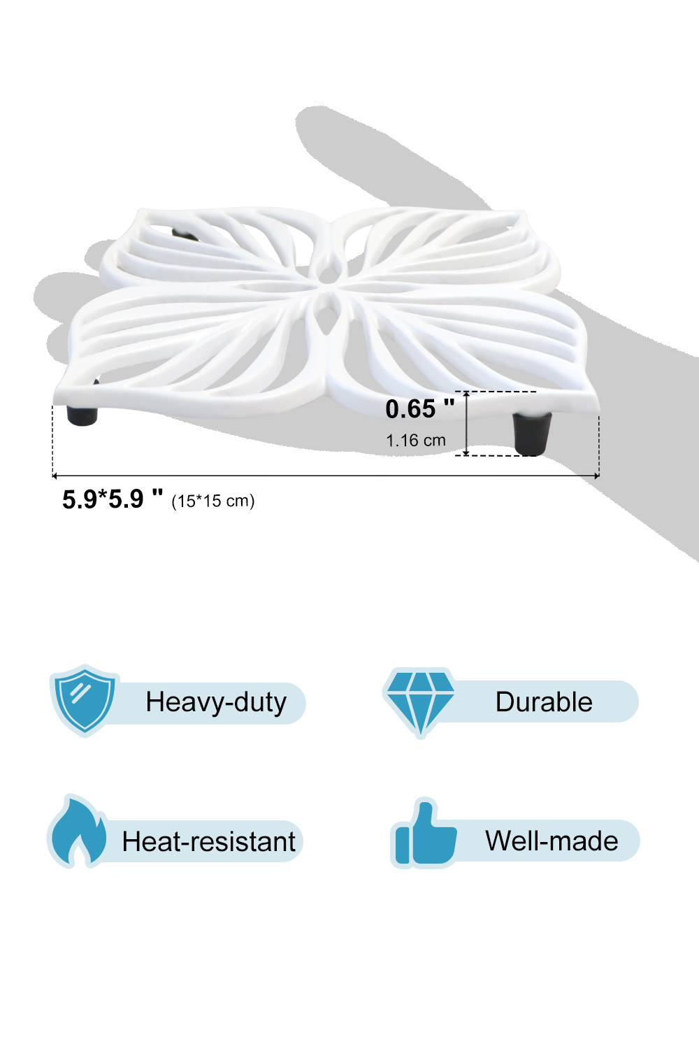 [Durable and Heat Resistant] HomeHand cast iron trivet safeguards surfaces from heat, with a convenient size of 5.9" x 5.9", suitable for any table. It is ideal for holding hot dishes, camping pots, plates, and coffee pots.