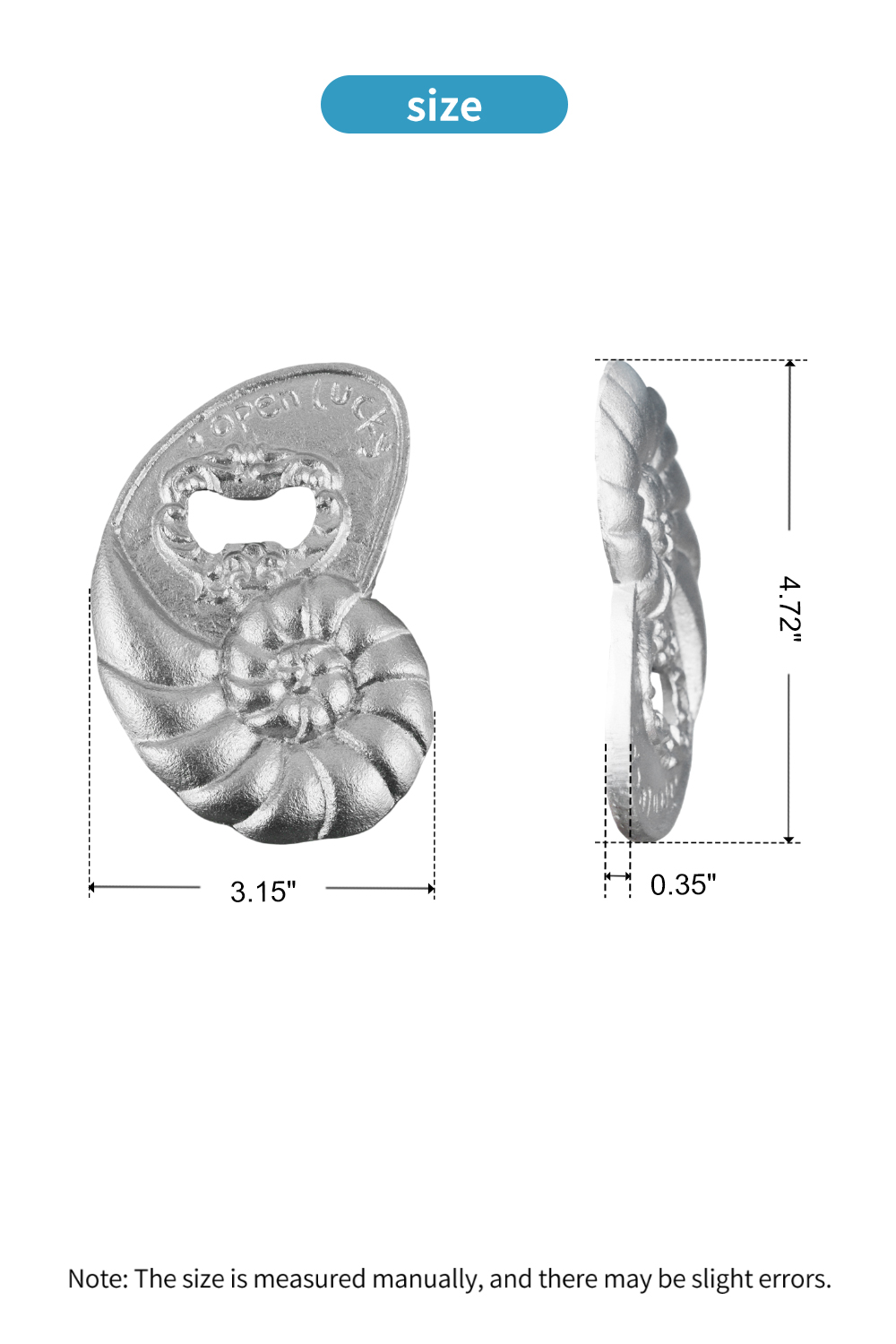 [Set of 2 – Nautical Elegance] Each set includes two conch bottle openers, combining functionality with ocean-inspired style. Dimensions: 4.72″(length) × 3.15″(width).